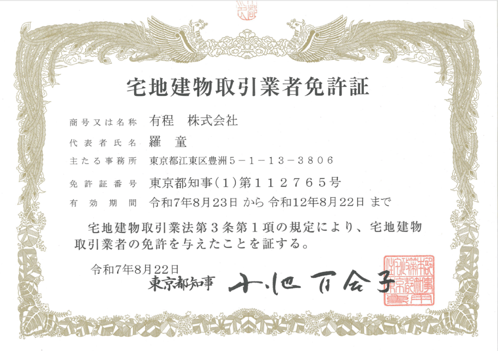 宅地建物取引業者免許番号 東京都知事(1)第112765号